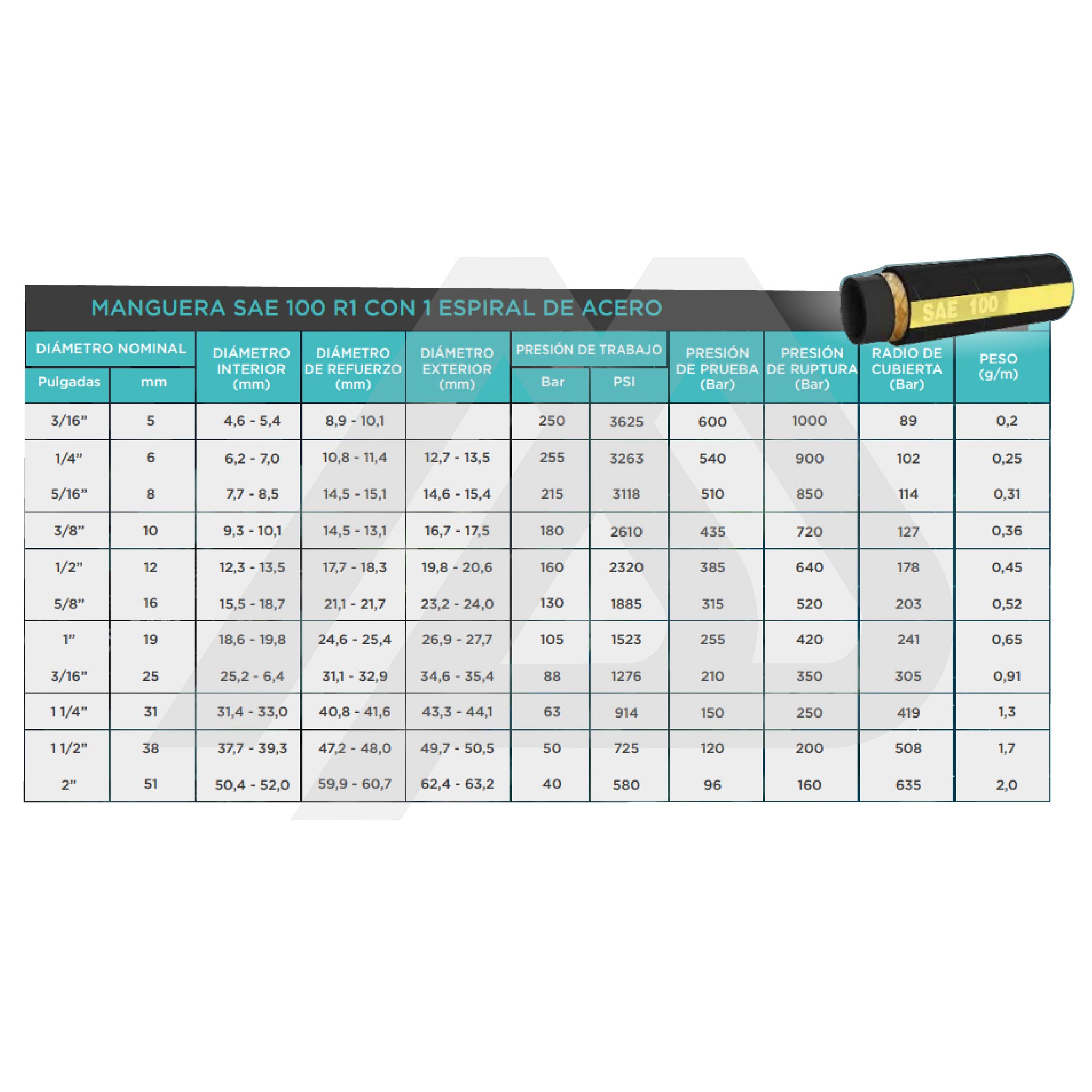 IMPORTANTE: para usos en hidrolavado deberá ser empleada la manguera SAE 100 R2